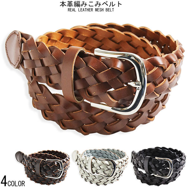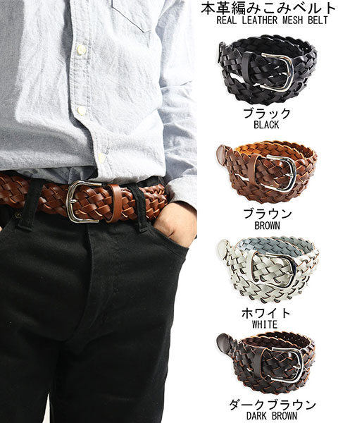 カジュアル ベルト メッシュベルト メンズ レディース 牛革 黒 茶 白 コゲ茶