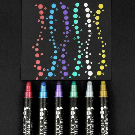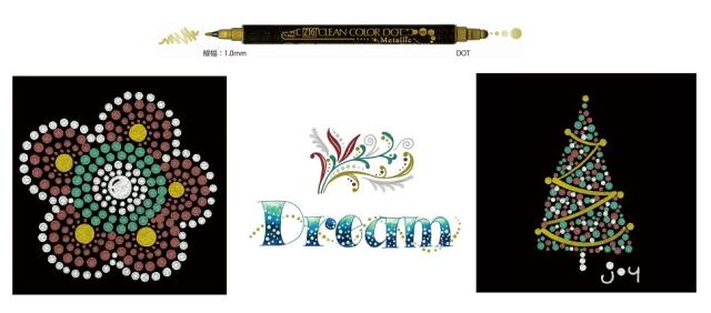 きらめくメタリックカラーで、濃い色の紙にも綺麗に発色します。