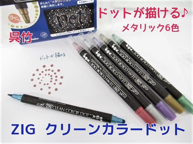 呉竹 クリーンカラードット メタリック 6色 丸が描ける 1850円 ZIG TC8100 6V クリーンカラー メール便 送料込 水性顔料インキ 呉竹 クレタケ カラーペン サインペン 手帳 プレゼント