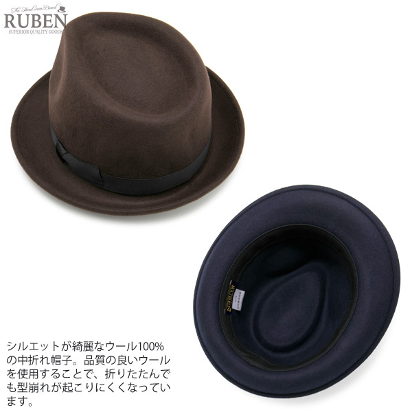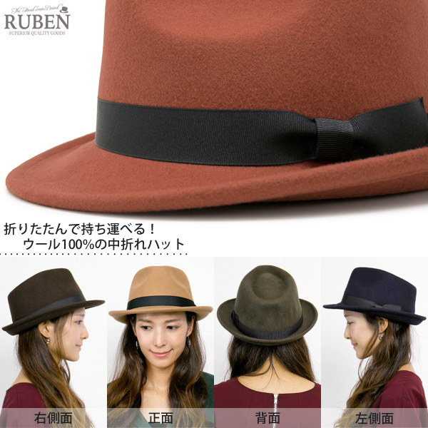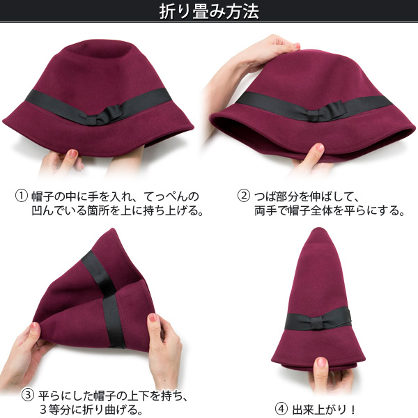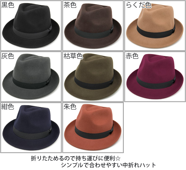 ウールの中折れ帽子で折りたためるのは珍しいですね。持ち運ぶのに便利で良さそうです。