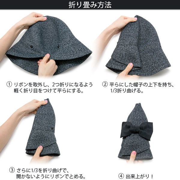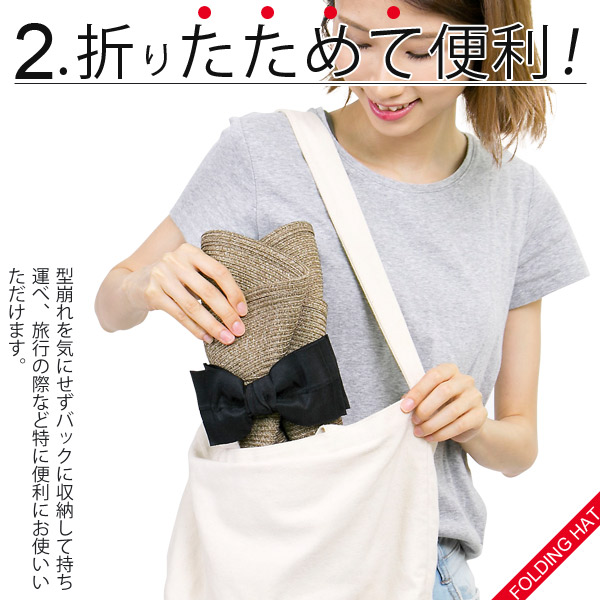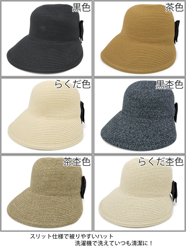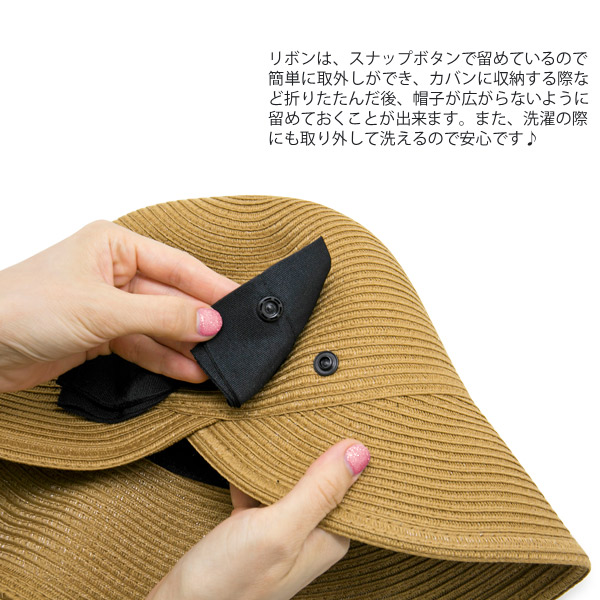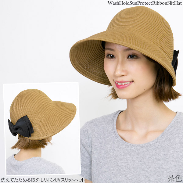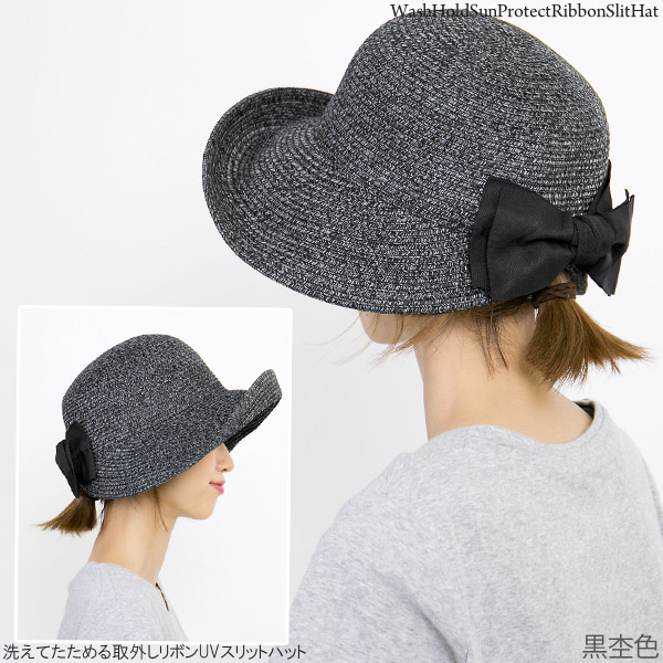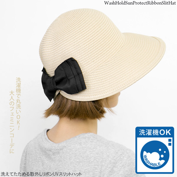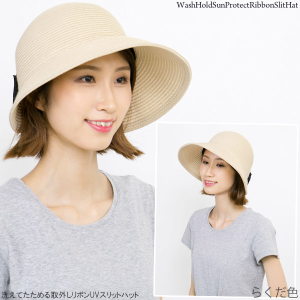 洗えるハット レディース [メール便可] 麦わら帽子 夏春 折りたたみ UV対策 / 洗えてたためる取外しリボンUVスリットハット