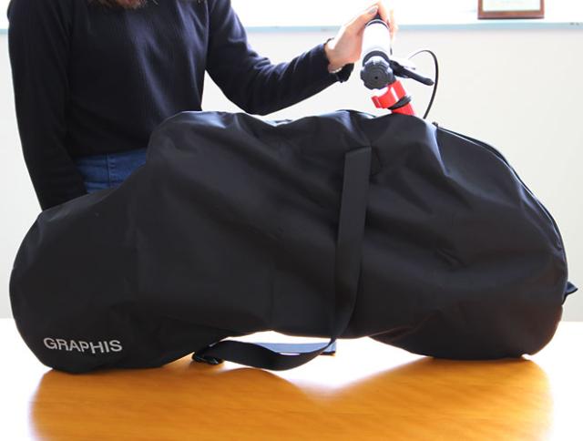 GRAPHISのロゴが入ったスタイリッシュな輪行バッグです。