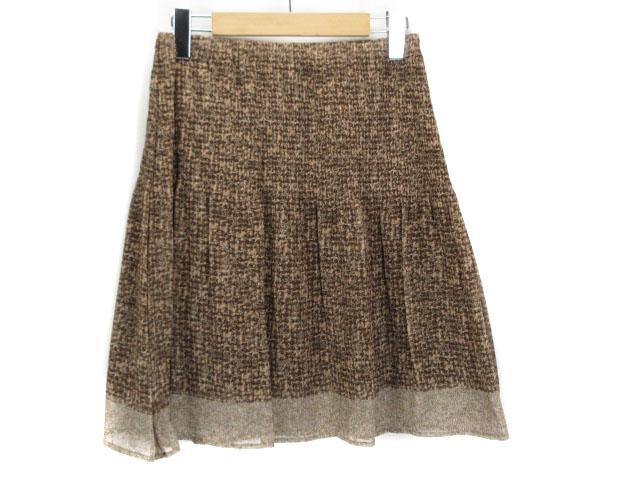 【中古】コムサマチュア Comme ca Mature スカート フレア ギャザー 総柄 シフォン 9 茶 ブラウン レディース
