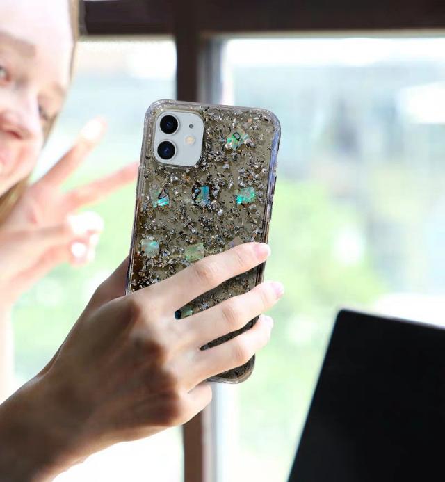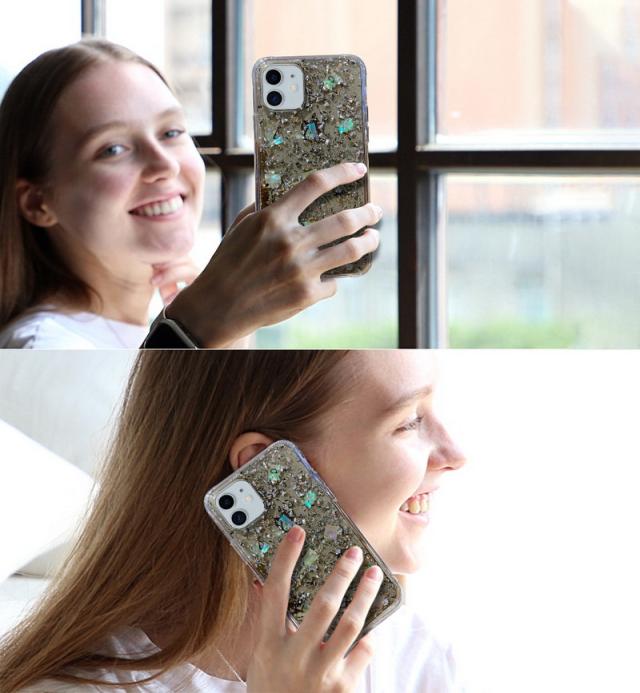 【可愛いデザイン】金箔入りのカーボネートは、キラキラで、とてもオシャレです。ストラップホールが付いて、お気に入りのストラップをつけたり、自分のお好みにアレンジして楽しめます。