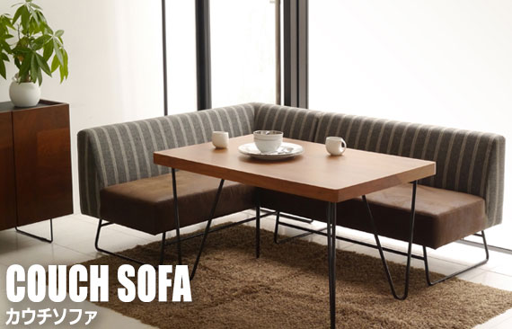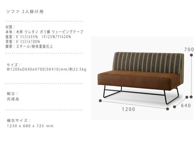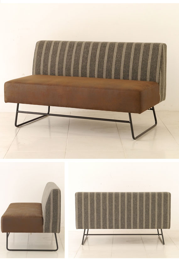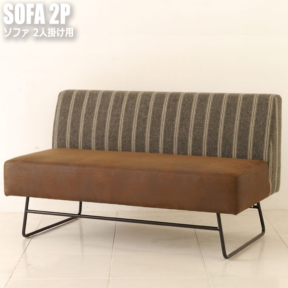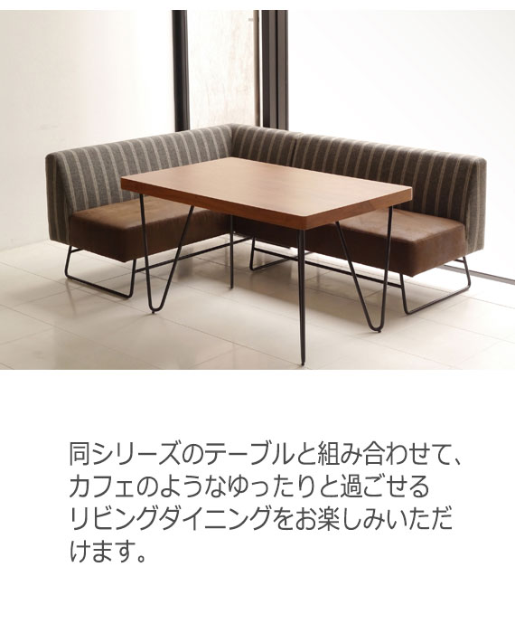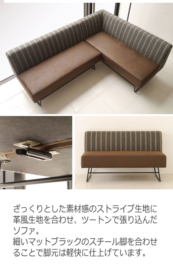 CAF カフ ソファ 2人掛け用 (sofa 組合せ リビングダイニング L字 片肘 レトロ ストライプ ブラウン レザー スチール脚 事務所)