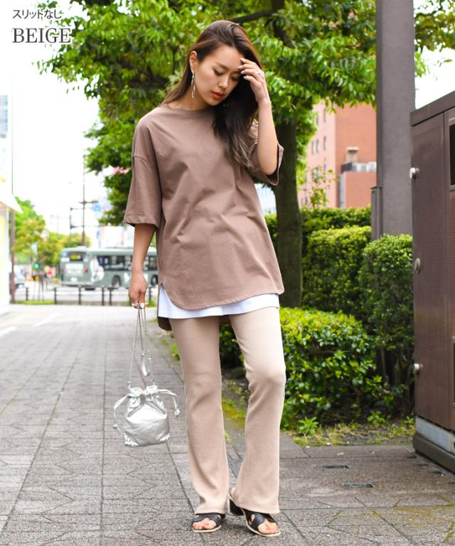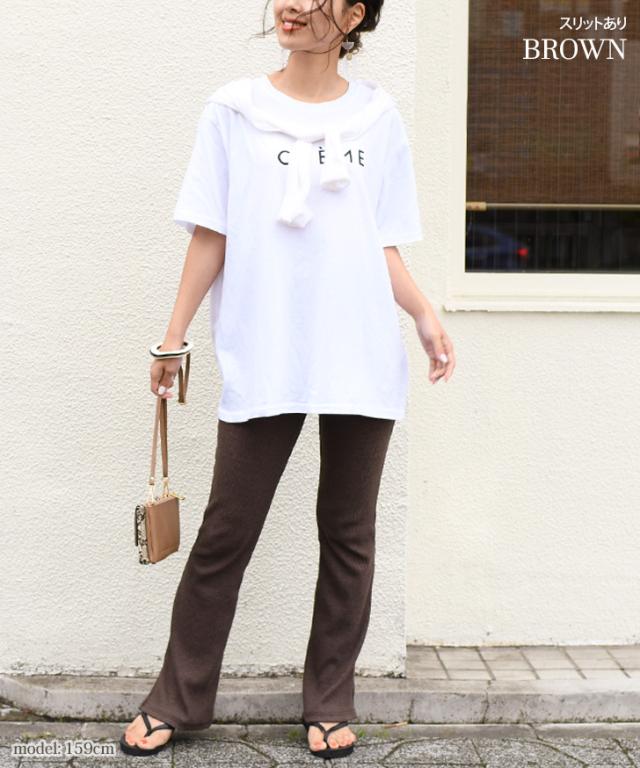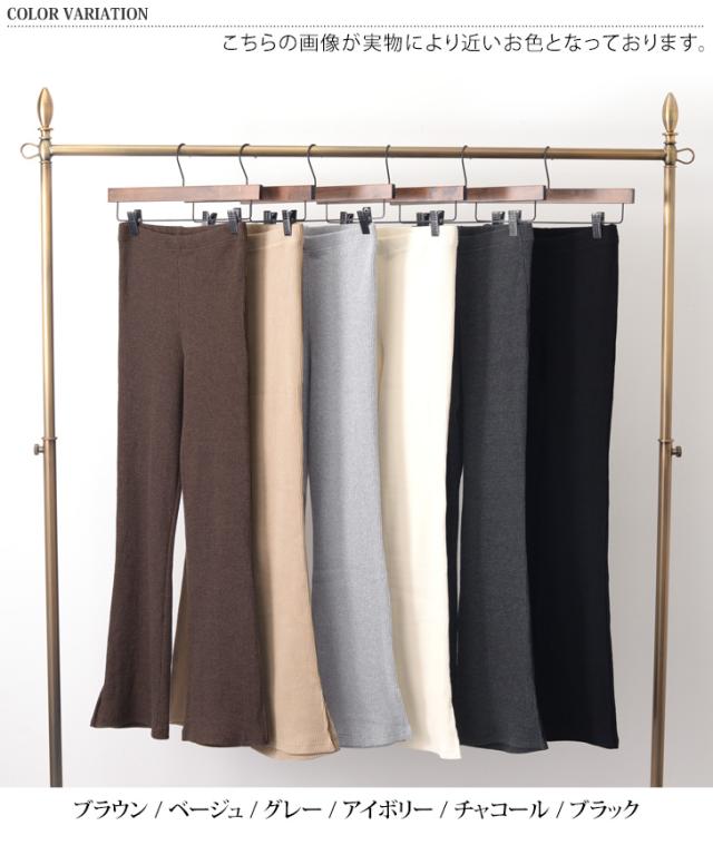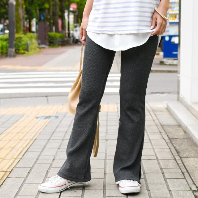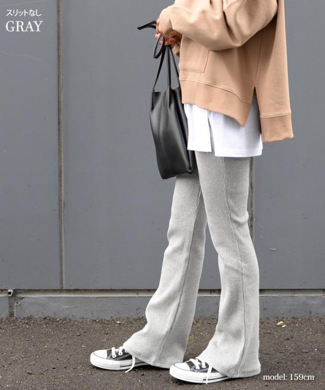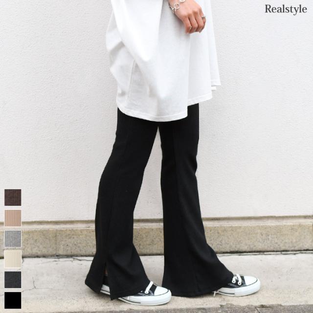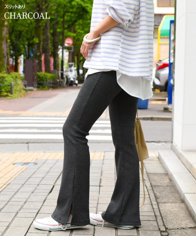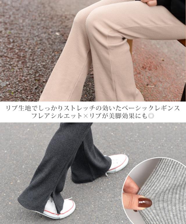秋新作 フレアパンツ リブ スリット リブパンツ レギンス レギンスパンツ レディース ボトムス リブフレアパンツ スリット ストレッチ インナー フルレングス 伸縮性抜群 ブーツカット