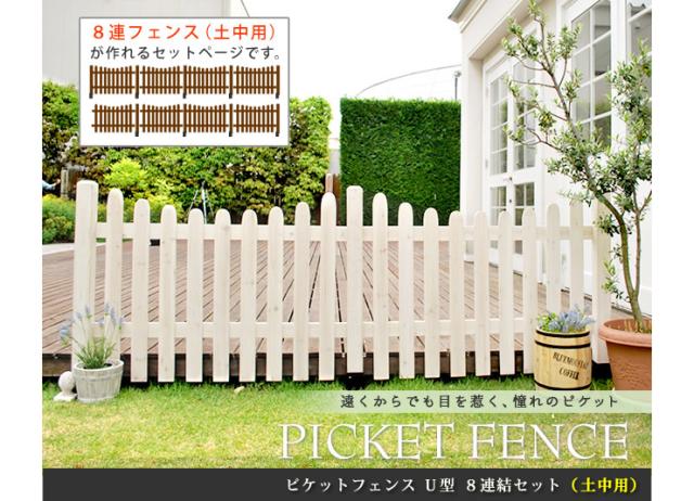 ■商品名 ピケットフェンスU型 8連結セット(土中用)