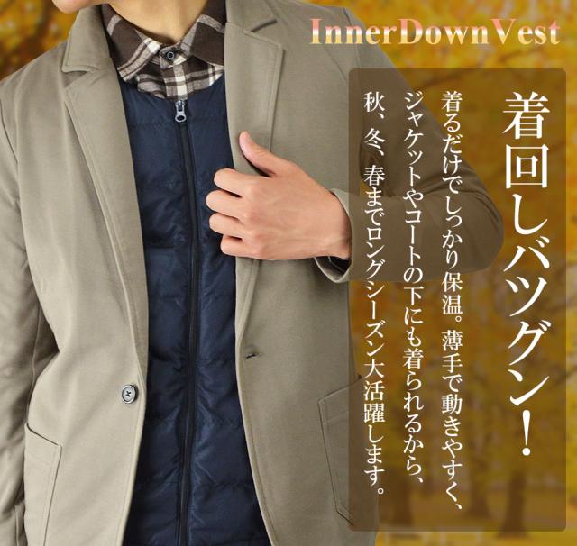 ダウンベスト メンズ インナーダウン ベスト 軽量 リアルダウン サイド裏シャギー 保温 防寒 暖かい ダウン ベスト インナー 暖か ライトダウンベスト 薄手 軽量ダウン