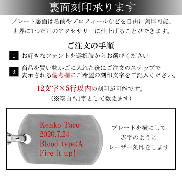 プレート裏面は名前やプロフィールなどを自由に刻印可能。