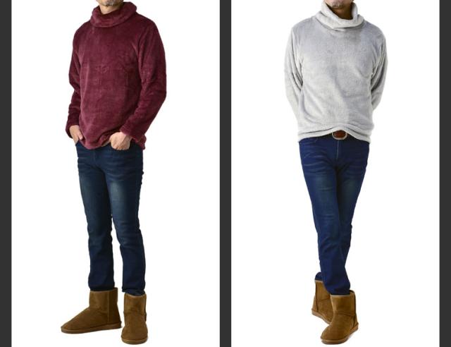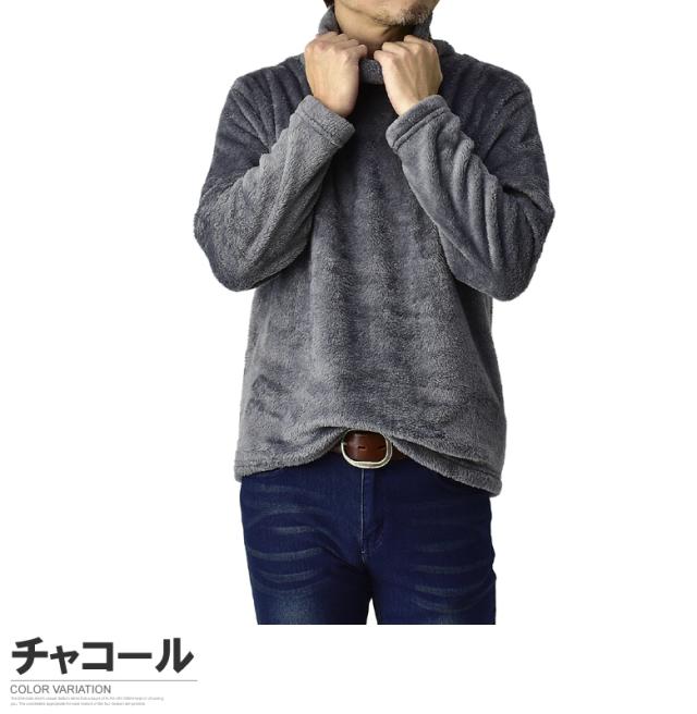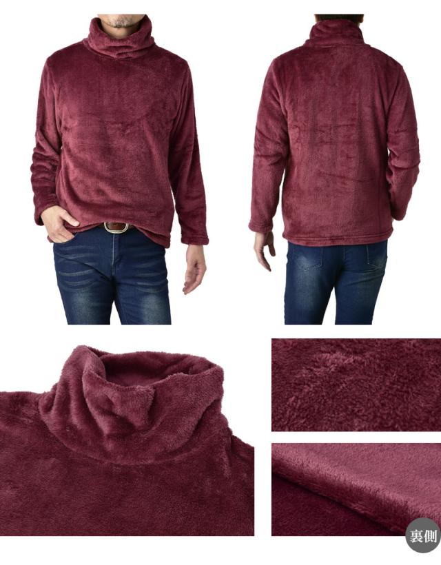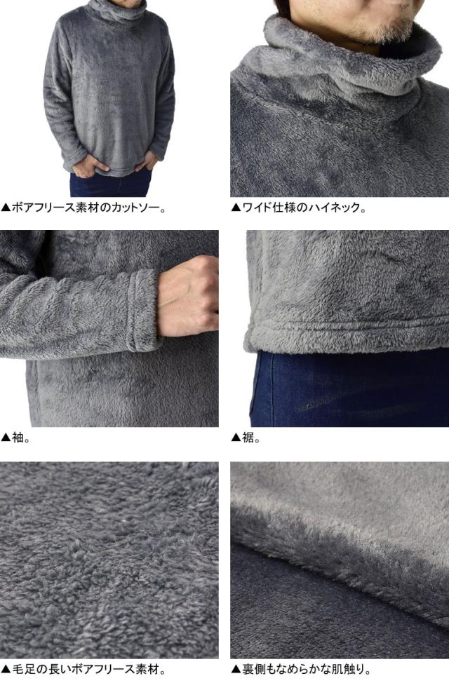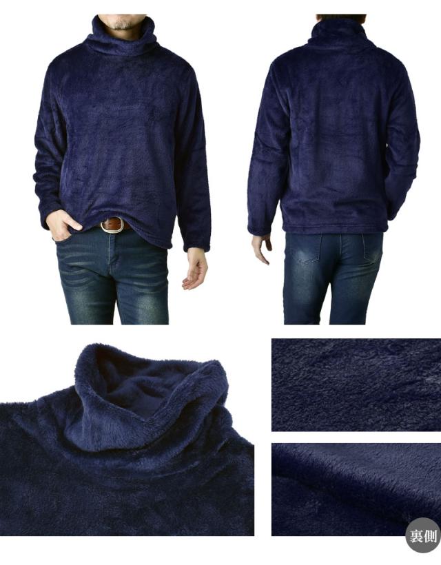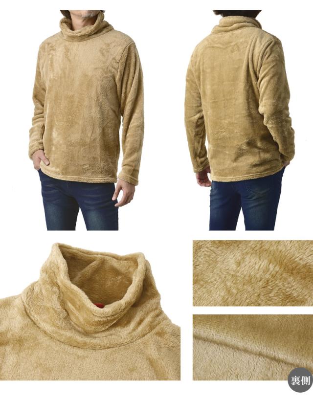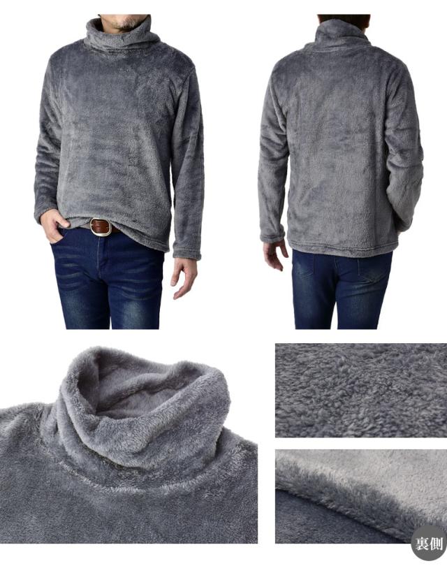 ふわふわフリース タートルネック メンズ ハイネック ゆったりネック カットソー フリース トップス【A7L】【パケ1】【A】