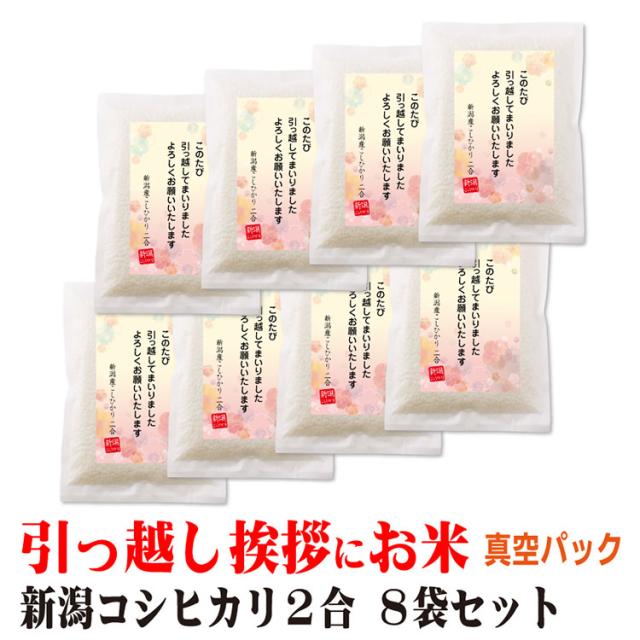 引越し 挨拶 ギフト 米 新潟産 コシヒカリ 2合×8個 真空パック 挨拶文の変更や名入れは不可です 送料無料