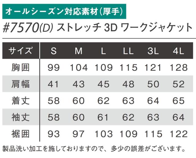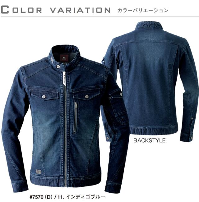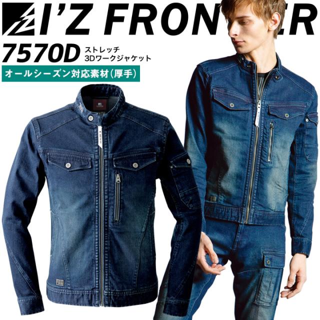 アイズフロンティア デニムジャケット 7570D ストレッチ 3Dワークジャケット 長袖 オールシーズン 厚手 作業服 作業着 7570シリーズ