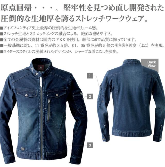 アイズフロンティア デニムジャケット 7570D ストレッチ 3Dワークジャケット