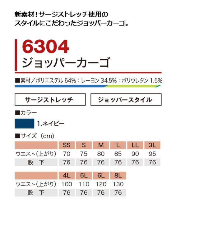 作業着 ジョッパーカーゴパンツ 6304 鳳皇 村上被服 サージストレッチ ジョッパースタイル ズボン 作業着 作業服【4L-8L】