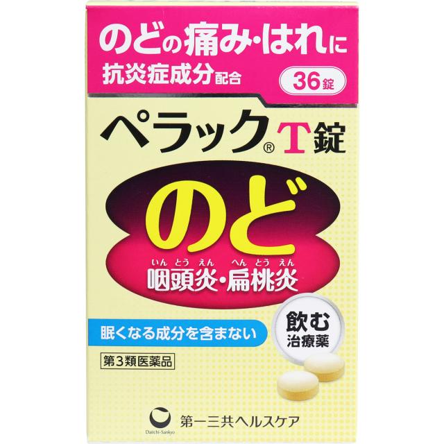 空気の乾燥・汚れやかぜなどからくるのどの炎症である咽頭炎・扁桃炎(のどの痛み、のどのはれ)によく効き、7歳の小児から服用できる薬です。