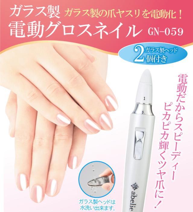 電動グロスネイル GN-059 電動だからスピーディー!ピカピカ輝くツヤ爪に!特殊加工のガラス製ヘッドは水洗い可能なので衛生的です。