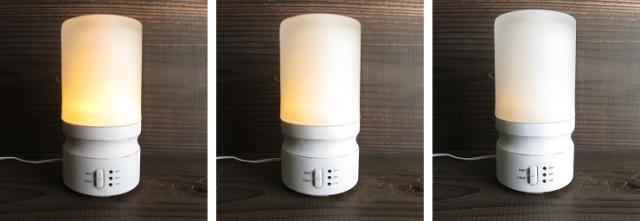二段階の明るさと、心安らぐ明滅機能でライトモードが充実。長寿命のLEDライト内蔵、暖色系の柔らかい灯りはアロマのミスト機能を使わなくてもルームランプとしてもオシャレに使えます。 |