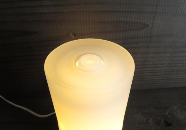 フロストグラスを通した柔らかいランプの灯りと、
