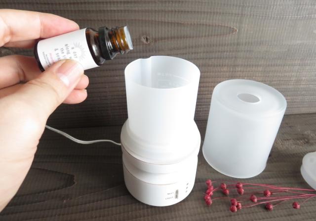 エッセンシャルオイルは附属しておりませんので、水タンクにお好みのエッセンシャルオイル2、3滴垂らしてをご使用ください。水のミストでエッセンシャルオイル本来の香りを楽しめます。 |