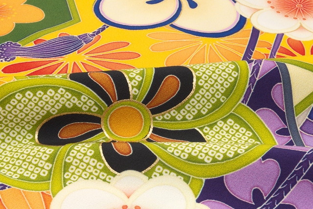 着物 緑や黄色などカラフル