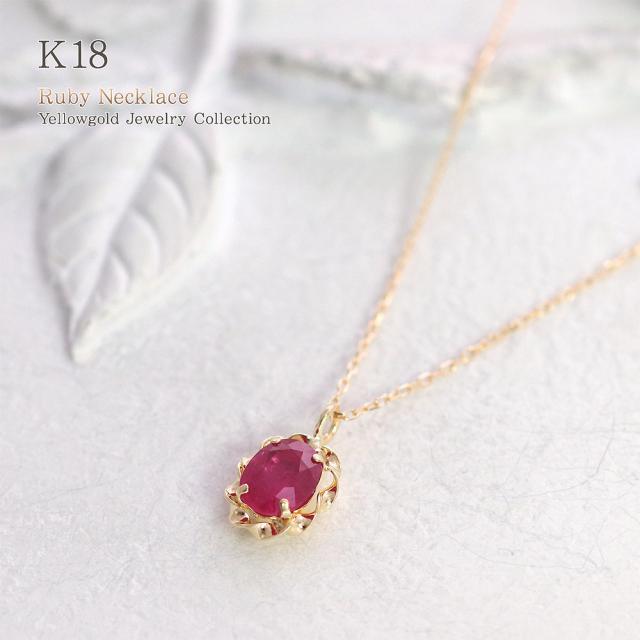ルビー 18金 18K ゴールド ネックレス 宝石 ジュエリー 誕生日 プレゼント 結婚記念日 アクセサリー レディース 華奢 シンプル レッド 赤 K18 18金ネックレス 記念日 ギフト 贈り物 ルビーネックレス 小ぶり 小さめ 可愛い 女性 彼女 妻 嫁 奥さん 喜ぶ 娘 お祝い ルビイ ruby