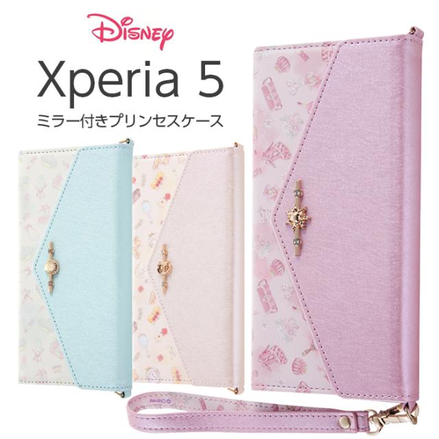 Xperia 5 ケース カバー 手帳型 ピンク ブルー レザー 革 保護 かわいい おしゃれ 女の子 カード入れ ポケット プリンセス SO-01M SOV41 901SO エクスペリア