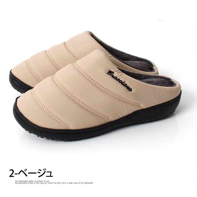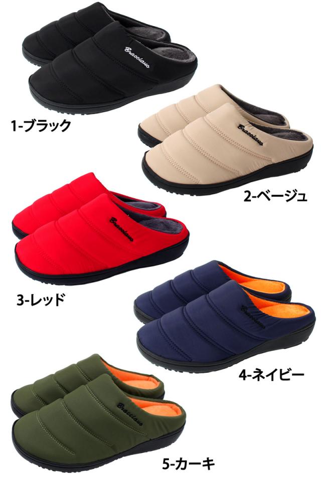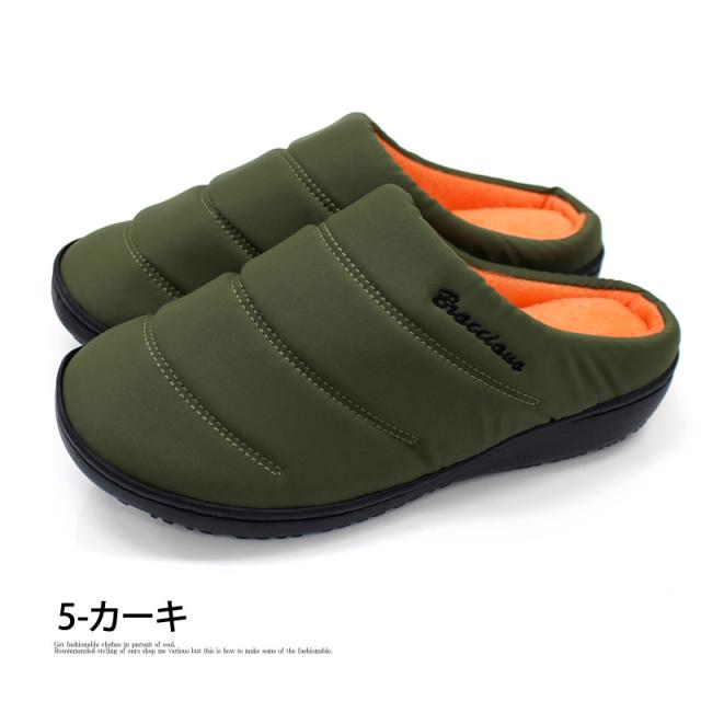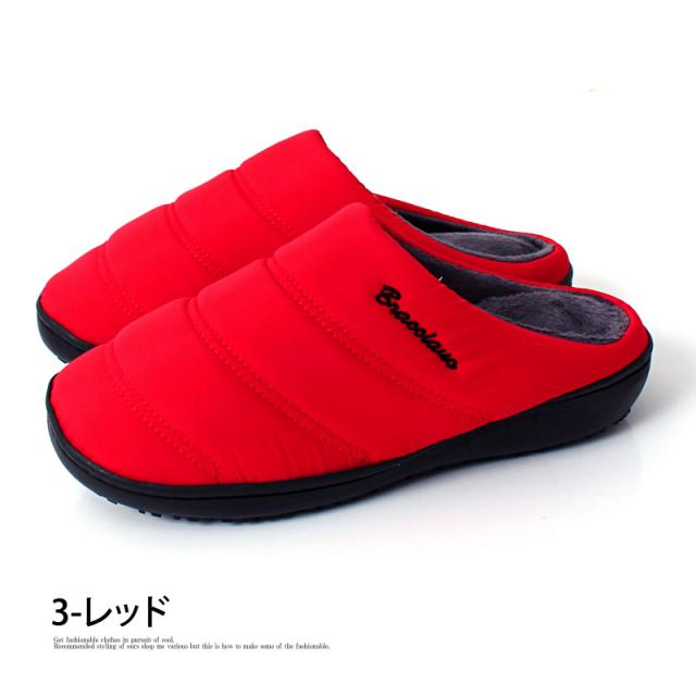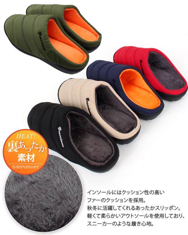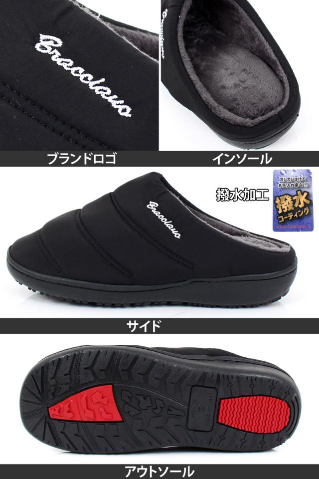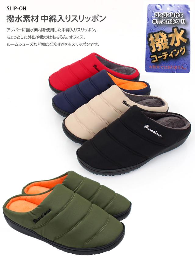 スリッポン メンズ 防寒 ファー 中綿 軽量 撥水加工 送料無料 サボ サンダル 温かい 新作 ブラック ベージュ レッド ネイビー カーキ あったか_b