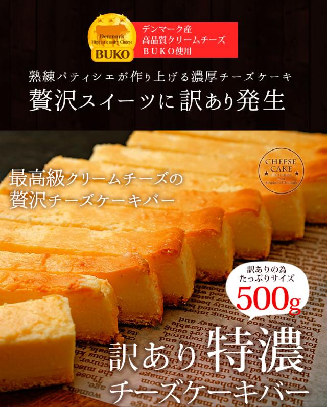 訳あり 特濃 チーズケーキバー 500g チーズケーキ ベイクド レア BUKOチーズ ホワイトデー ケーキ スイーツ お得 たっぷり 大容量