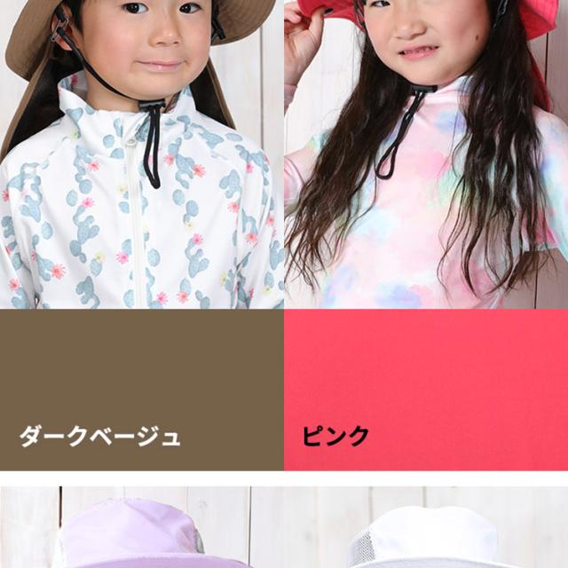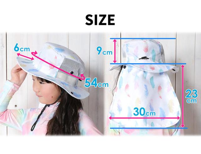 - 4歳娘に54?を購入。後頭部のゴムヒモでサイズ調整出来るので、頭が小さめでもジャストサイズで被れます。あごヒモを付ければ風に飛ばされる心配もなく、メッシュで蒸れにくく、首肩も日よけできて、海水浴で大活躍でした。娘が自分で選んだカラーなので気に入って使っています。