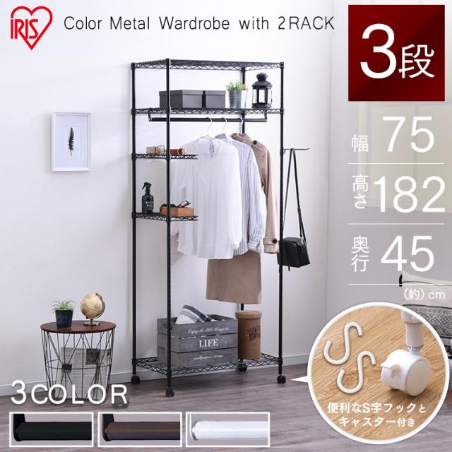 棚 ハンガーラック キャスター付き アイリスオーヤマ カラーメタルワードローブ CMWR-75183 スチールラック カラーメタルラック 3段 ラック ワードローブ キャスター キャスター付き ラック スリム S字フック 北欧 服掛け アイリスオーヤマ 新生活 インテリア