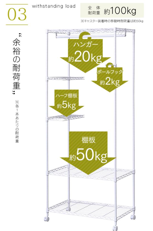 ハーフ棚板を内側に取り付ければコンパクトに、外側に取り付ければ掛けられる衣類の量がUP!