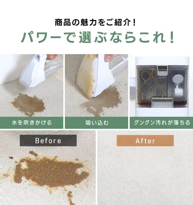 水を吹きつけながら、カーペットの汚れをすすいで強力吸引!