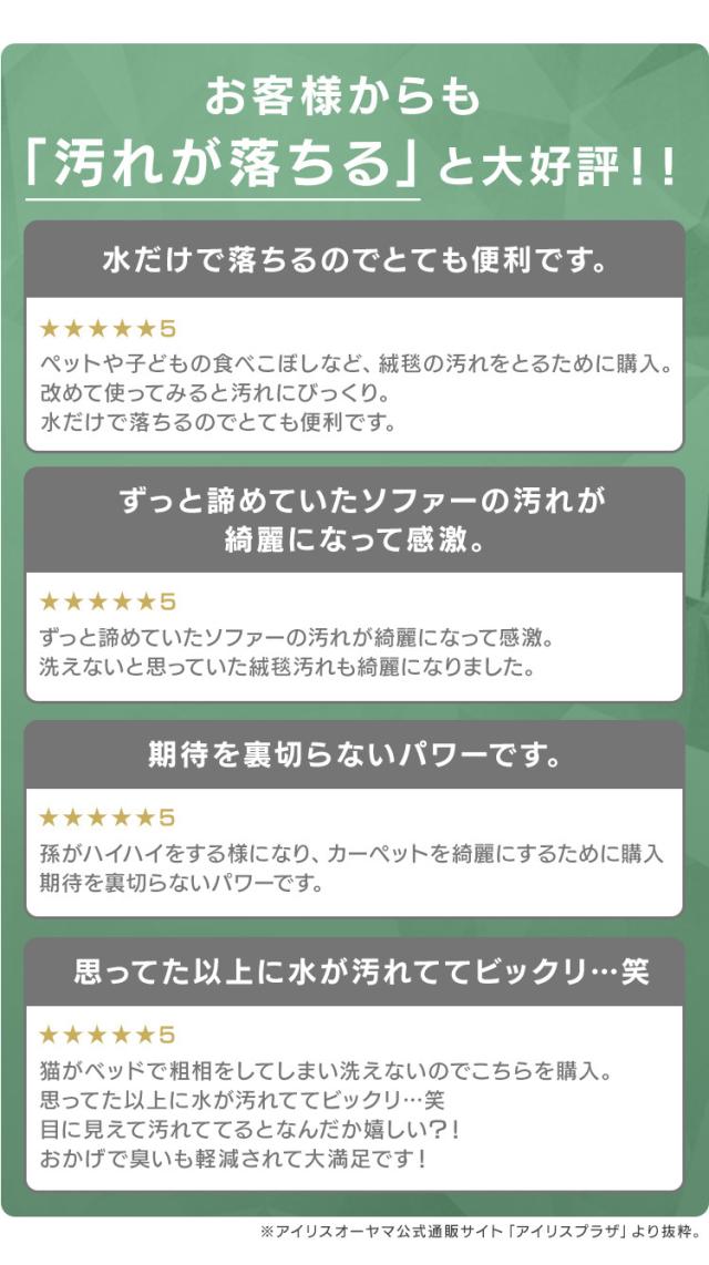 - きれいになっているのか見た目でわからなくても吸引した汚れた水で満足でき終わると気持ちがいい取扱も簡単で場所も取らない