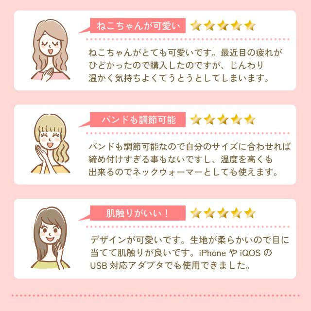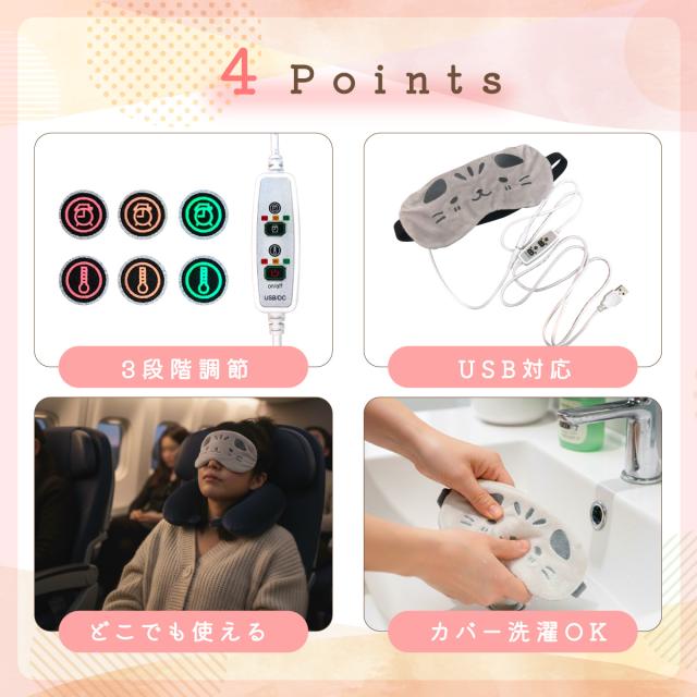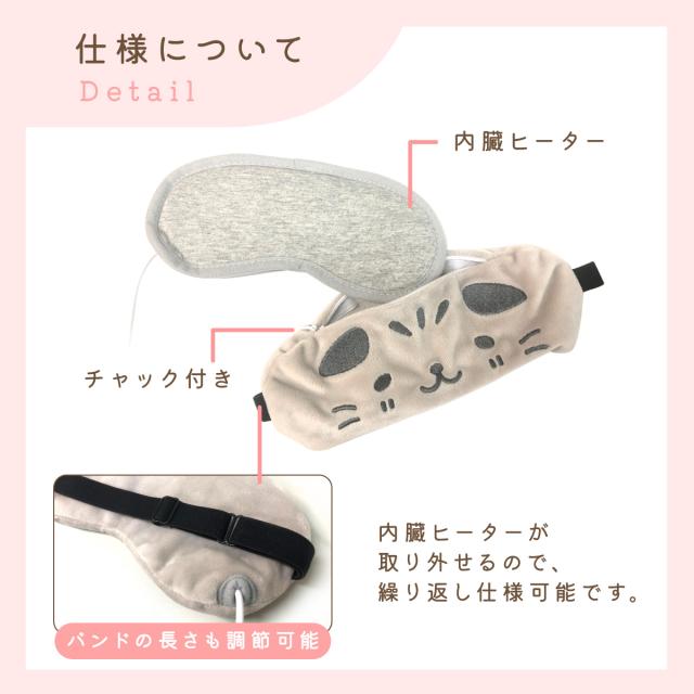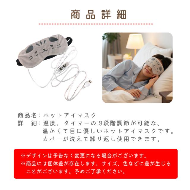 ホットアイマスク USB かわいい 電熱式 3段階調節 タイマー 疲れ目 洗える 癒し リラックス 旅行 目元ケア 癒しグッズ じにゃん 猫 h-eyemask