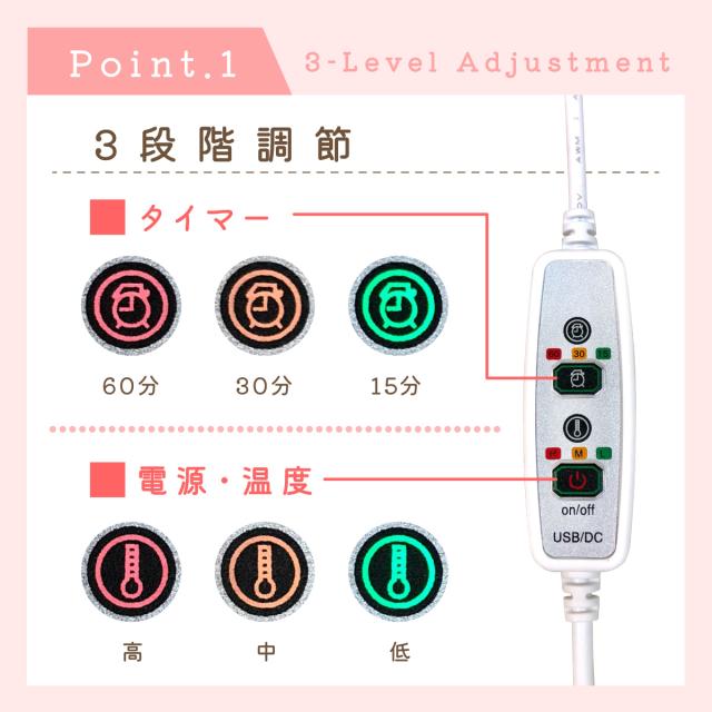タイマー・温度が3段階で調節できます。