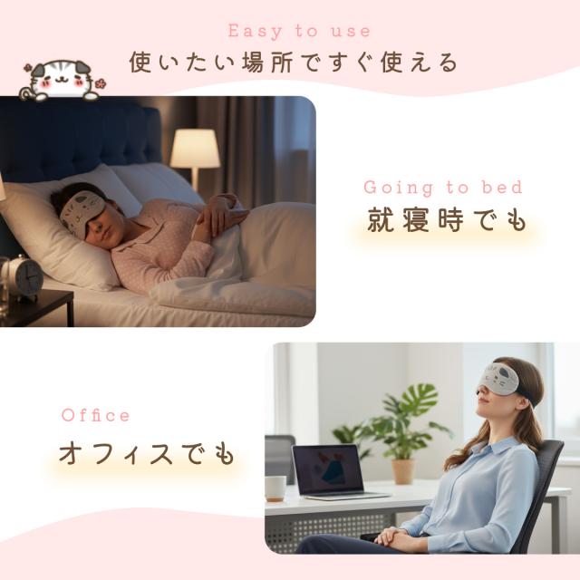 - 繰り返し使えるホットアイマスクを探していたら、なんとも可愛いアイマスクを発見! カバーも洗えて清潔に使えるし、温度、時間、ベルト部分も調整が可能なので助かります!