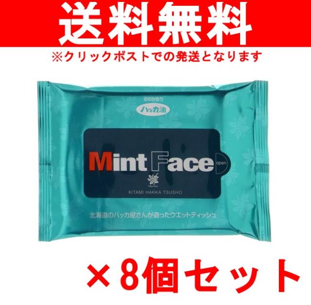 【送料無料】北見ハッカ通商 MintFace(ハッカ入ウェットティッシュ)20枚入り ×8個セット【薄荷】【清涼感】【クリックポスト】