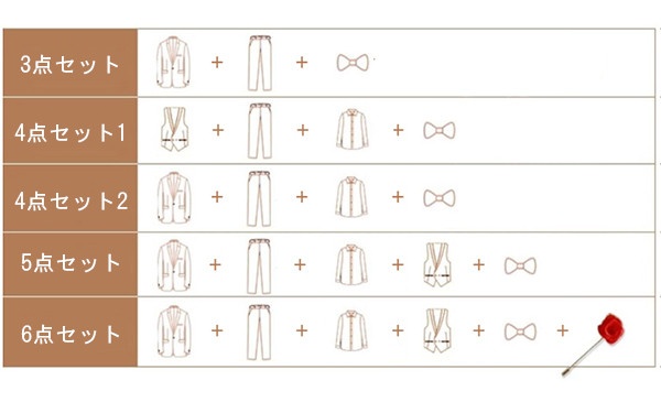 6点セット:ジャケット/パンツ/ベスト/シャツ/蝶ネクタイ/ブローチ