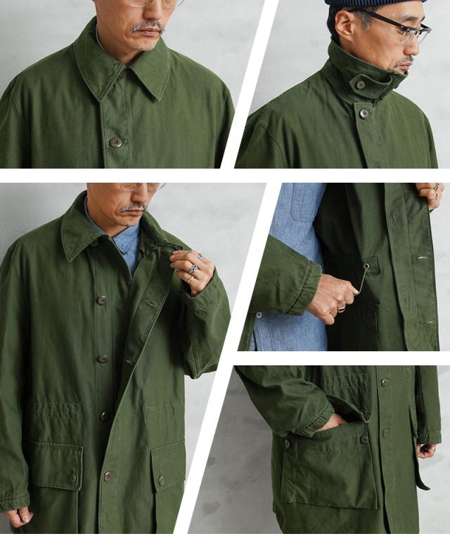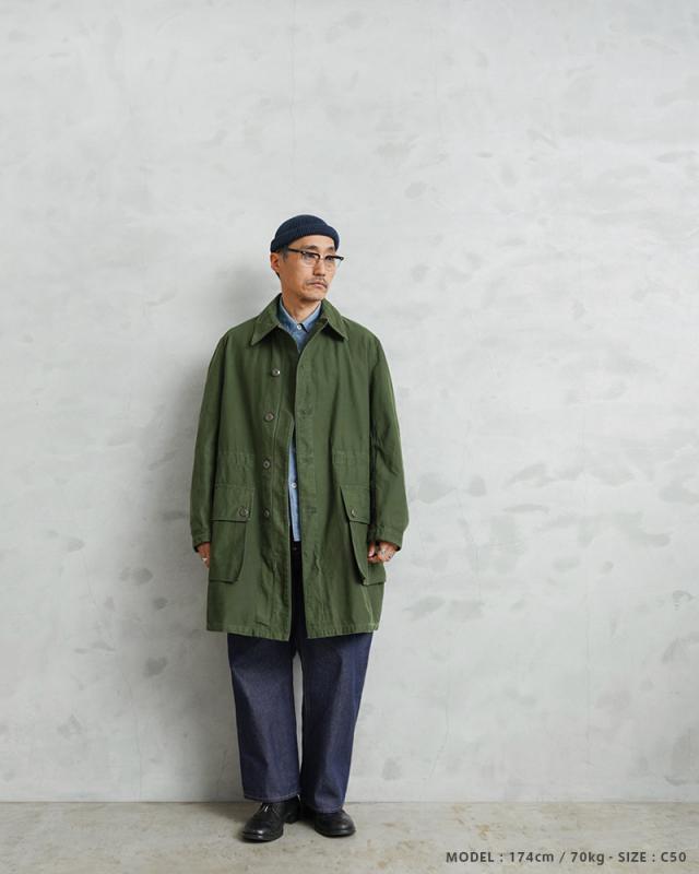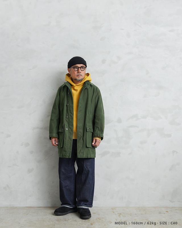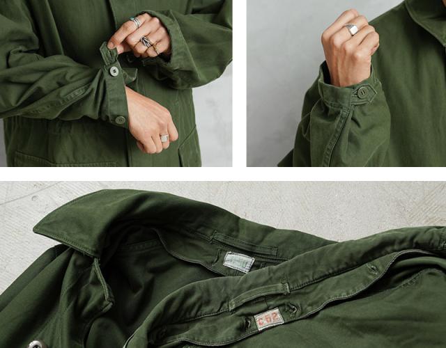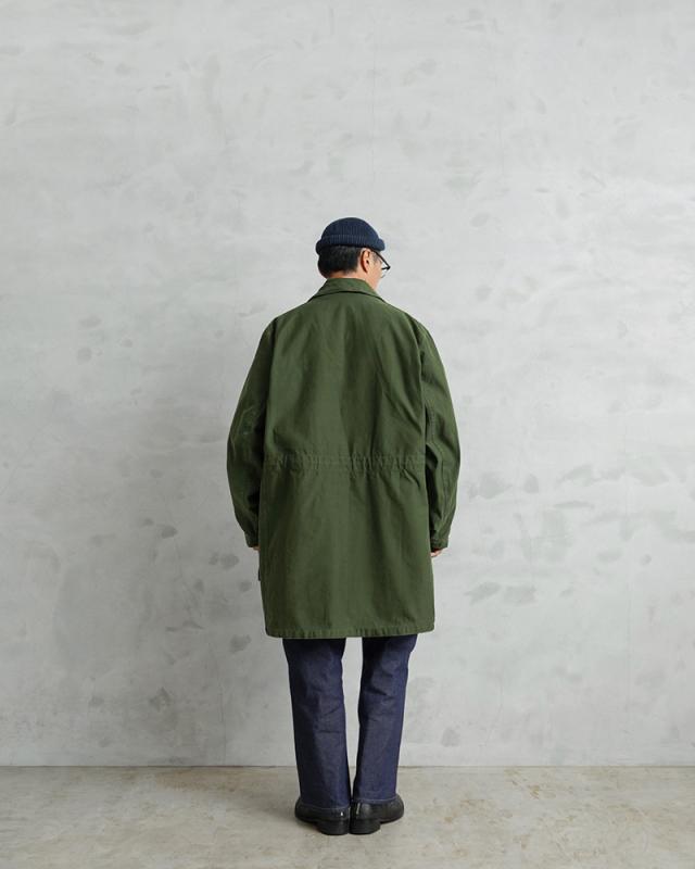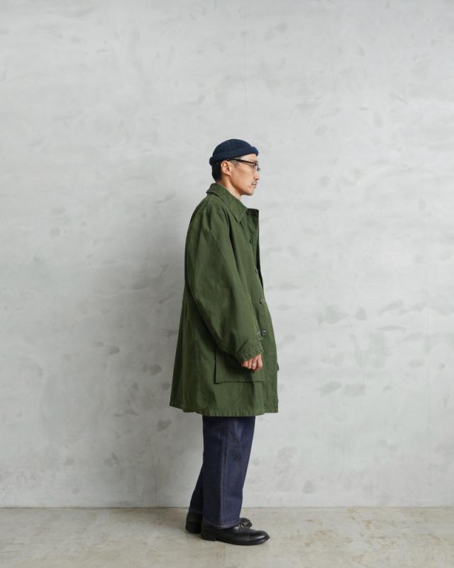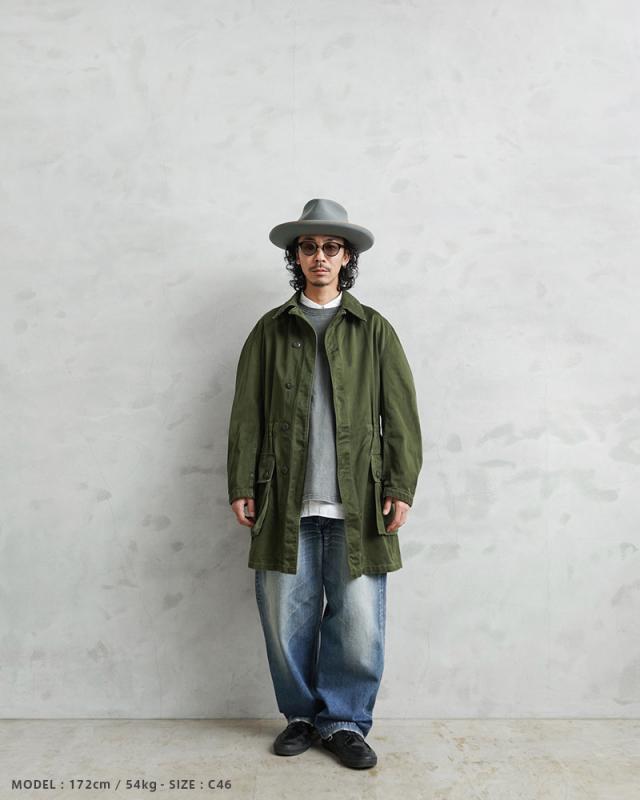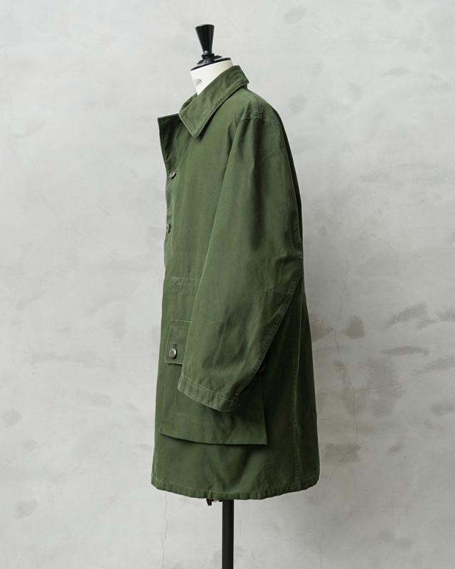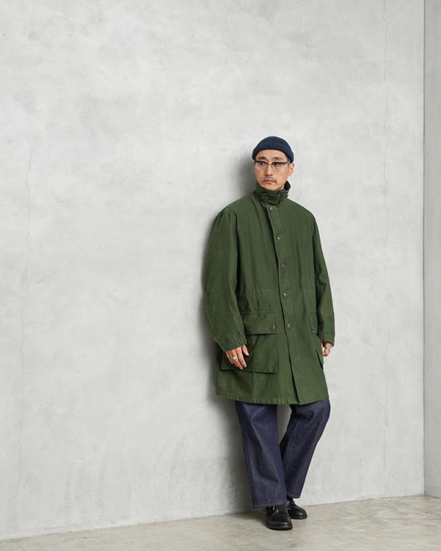 近年、ユーロミリタリーの中でも確固たる地位を築きつつあるスウェーデン軍アイテム。数ある洗練されたデザインの中でも、象徴的な存在として挙げられるM-59フィールドジャケットです。今回ご紹介するM-59は、M-90の原型とも言える存在で、主に1960年代から80年代にかけて採用されていたフィールドコートです。実用性とデザイン性を兼ね備えた、まさにスウェーデン軍を代表する名品です。スウェーデン軍らしく、無駄の無いミニマルなデザインで、ベーシックなステンカラータイプでありながらも、フロントのフラップ付きの大きなポケットに存在感があります。ゆったりとした身幅から生まれる美しいAラインシルエットは、現代的なバランスにも通じるものがあります。しかし、それは単なるオーバーサイズではなく、ライナー装着を前提とした設計や可動域を確保するための合理的なパターンによるもの。実用性を追求した結果として完成されたフォルムです。