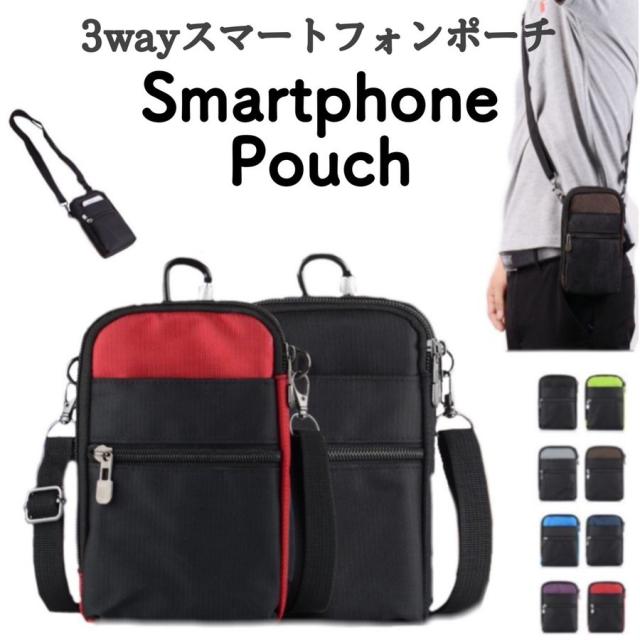 スマホポーチ メンズ ショルダー ベルトポーチ カラビナ 防水 仕事用 おしゃれ ウエストポーチ 入れたまま アウトドア 大きめ 縦型