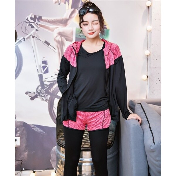 - この忙しい時期にしては早く届いたので驚きました! このお値段で5点セットはお買い得でした。 今回は知り合いに頼まれたので感想を聞いたところ、短パン?とは別に短パン、レギンスが合体したタイプ、トップブラ(スポーツタイプ)、Tシャツ、羽織の5点セットだったそうです。本人はそれぞれに使っていくのでと喜んでいたのでよかったです。