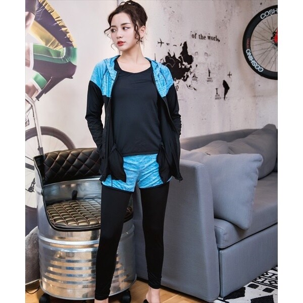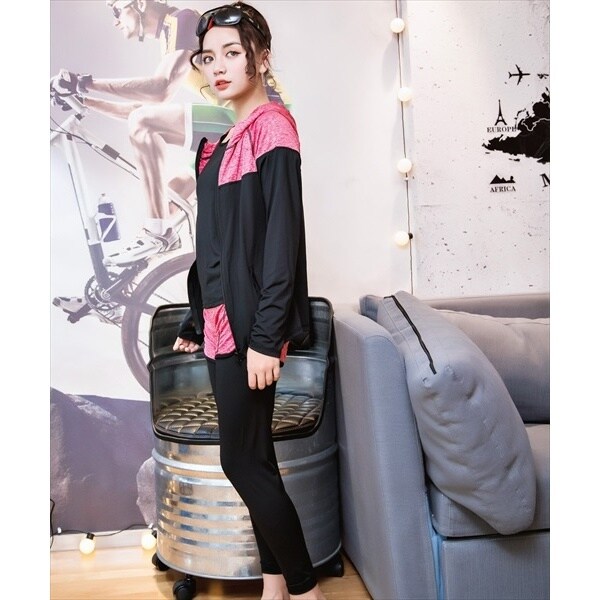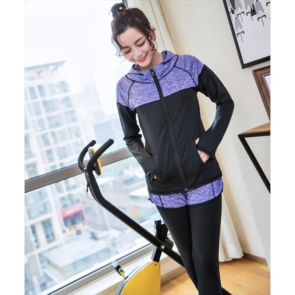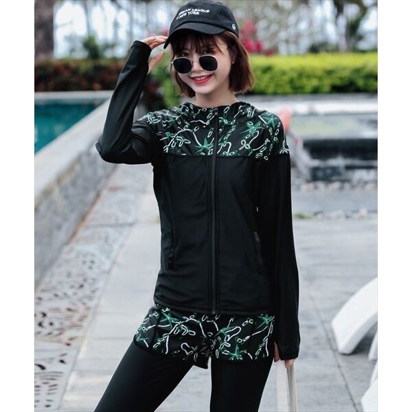 フィットネス 水着 レディース 長袖ラッシュガード5点セット