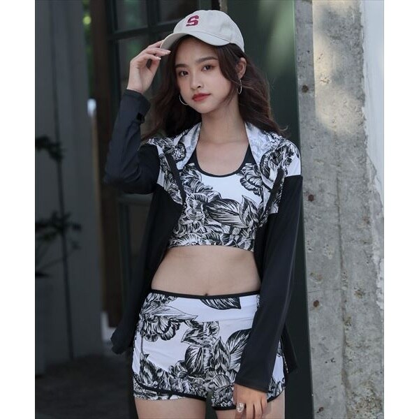 水着にラッシュガードを合わせて程よく肌見せさせるのも◎