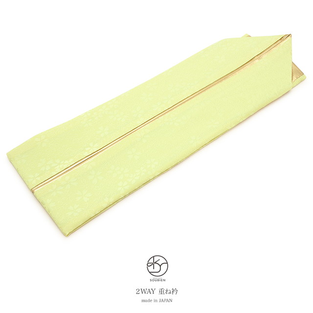 重ね衿 伊達衿 重ね襟 振袖 薄緑 ライトグリーン 金色 シンプル 桜 花 リバーシブル 両面 2way 正絹 成人式 伊達襟 和装小物 メール便対応