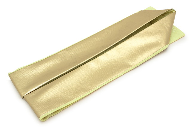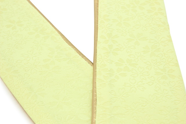 桜の花を織り込んだ意匠で、裏面は金色の無地のリバーシブルとなっており、衿の見せ方を替えて四通りの使い方ができます。