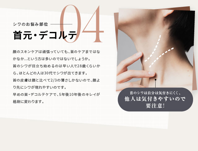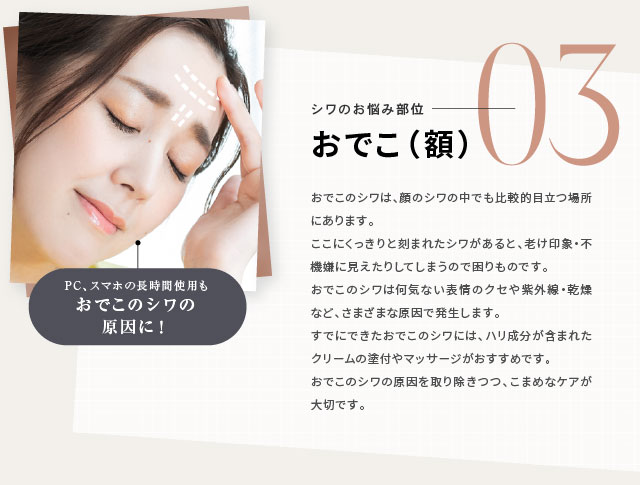 ●ほうれい線、目元・目尻、おでこ、首などにできてしまったシワにご利用いただけます。
