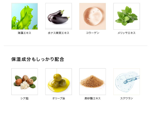 ●アルコール、石油系界面活性剤、紫外線吸収剤、パラベン、鉱物油、動物性原料、サルフェート、合成香料、合成着色料不使用