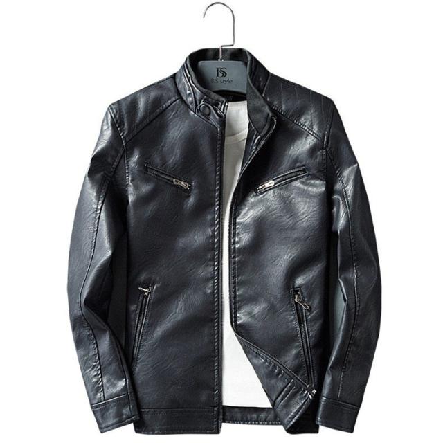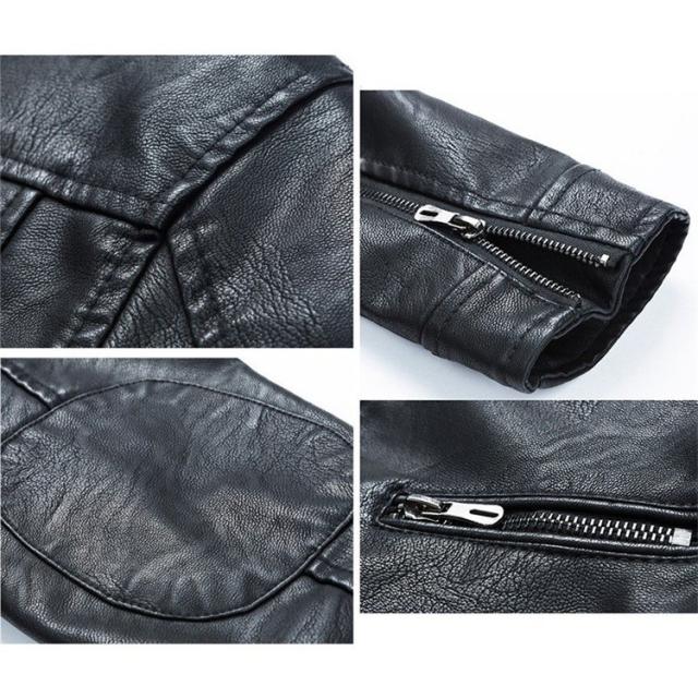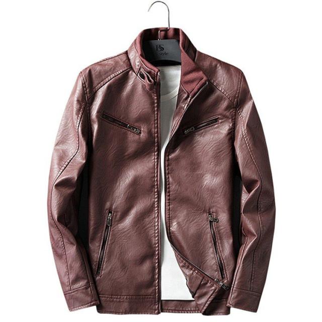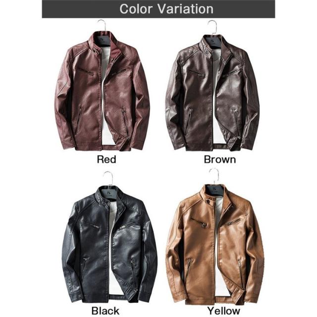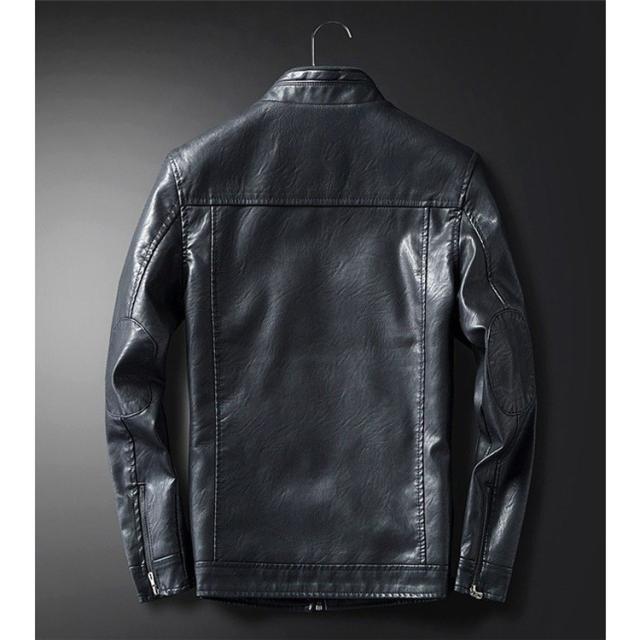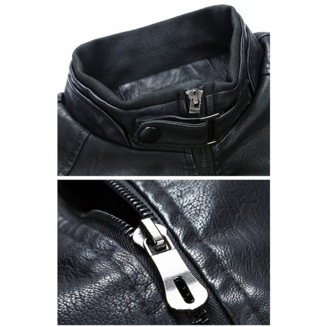 送料無料★革ジャン メンズ ライダースジャケット スタンダカラー 裏起毛 保温 スリム 秋 カジュアル