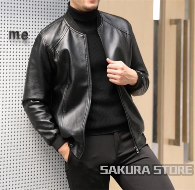 ライダースジャケット メンズ レザージャケット ショート丈 フェイクレザージャケット 無地 pu革 秋冬アウター ブラック 黒 革ジャン 新作