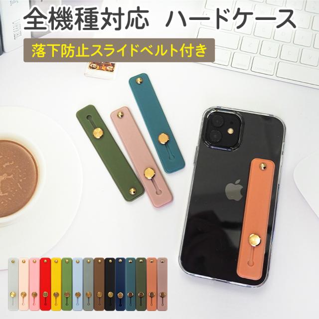 スマホケース ハード 全機種対応 スマホバンド付き 持ち手【クリアケース×落下防止スライドベルト】メール便送料無料 受注生産